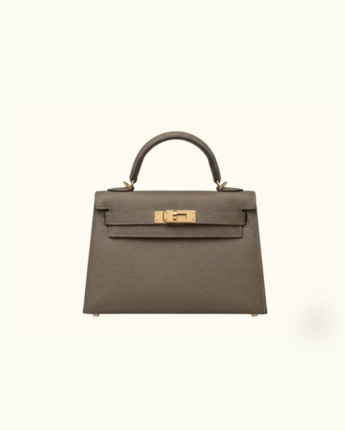 Hermes mini Kelly Epsom Trapezoid Handbag Classic Taupe