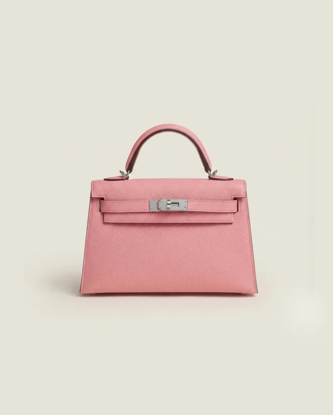 Hermes mini Kelly Epsom Trapezoid Handbag Rose Pink