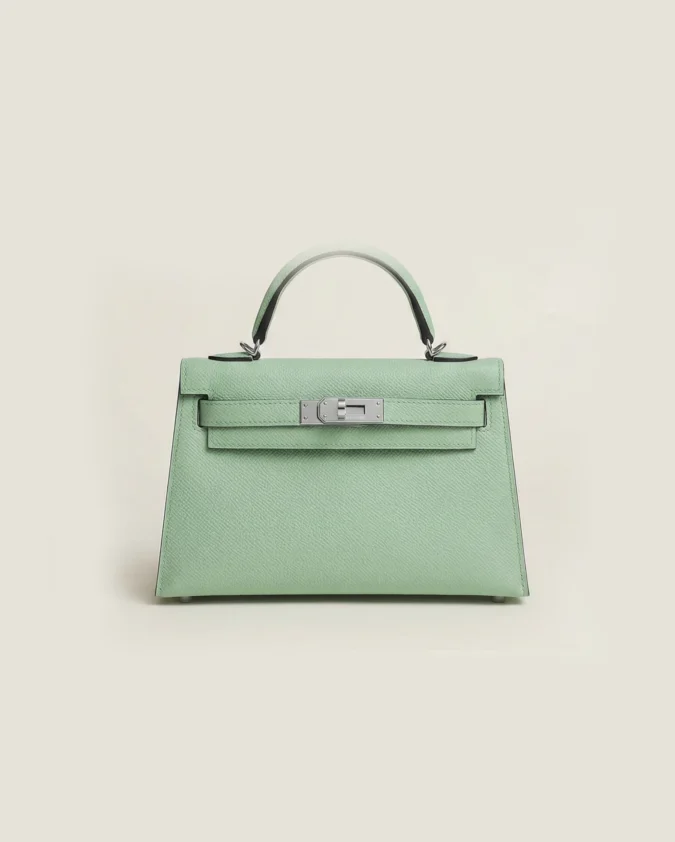 Hermes mini Kelly Epsom Trapezoid Handbag Seafoam Green
