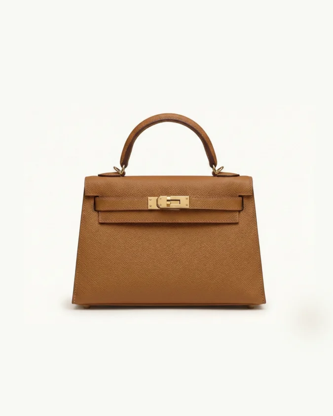 Hermes mini Kelly Epsom Trapezoid Handbag Tan Brown