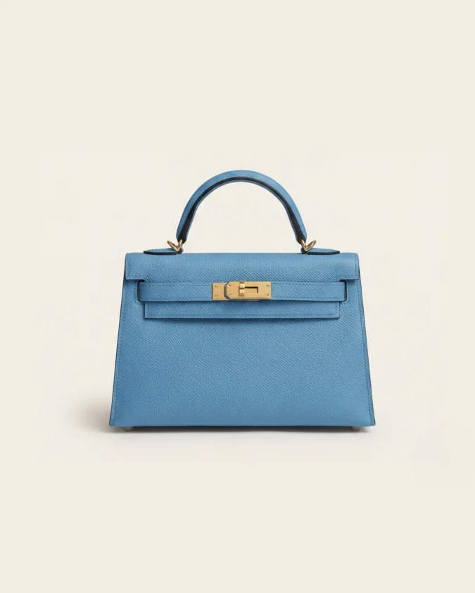 Hermes mini Kelly Epsom Trapezoid Handbag Sky Blue