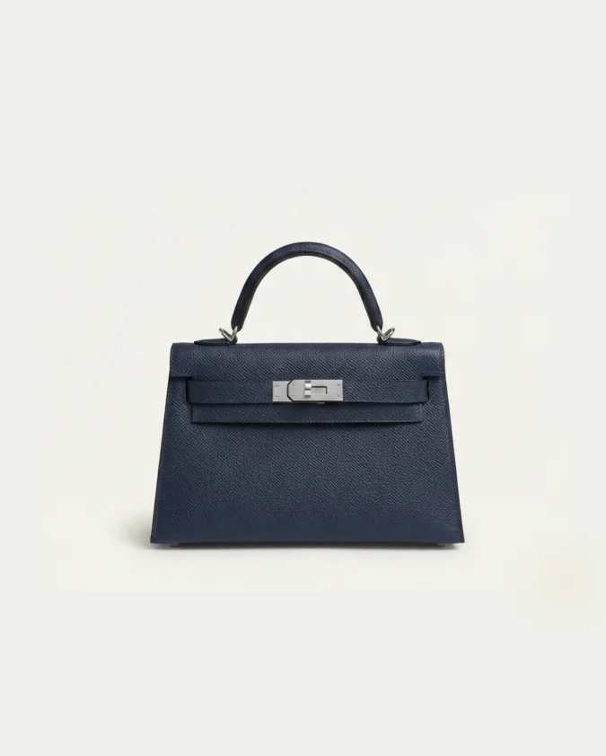 Hermes mini Kelly Epsom Trapezoid Handbag Navy Blue