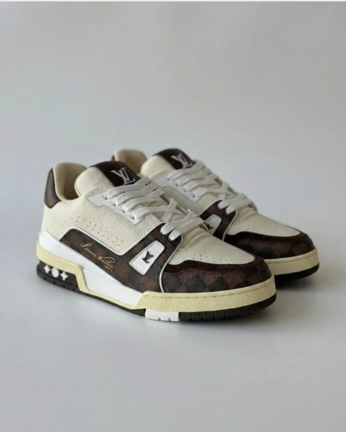 د.إ850.00An elevated take on the cult-favorite silhouette originally designed by Virgil Abloh, this edition of the LV Trainer features a striking combination of white grained calf leather and Damier grained calf leather. The Damier panels are meticulously crafted to replicate the look of the House’s iconic canvas, offering a textured, heritage-inspired aesthetic.