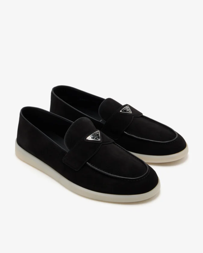 Add quiet refinement to every outfit in Prada's Suede loafers. Part of the brand's Ramadan edit, they're characterized by the pinched stitch seam on the upper, enameled metal triangle logo, and contrasting rubber sole.