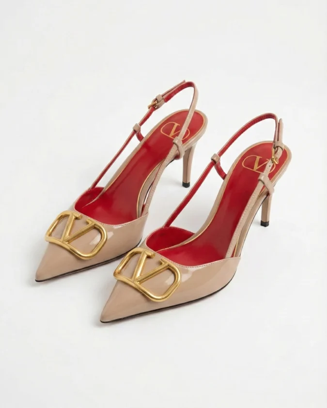 VLogo Embellishment: The iconic metal VLogo on the toe box is intricately decorated with imitation pearls and micro-crystals for a high-fashion aesthetic.
