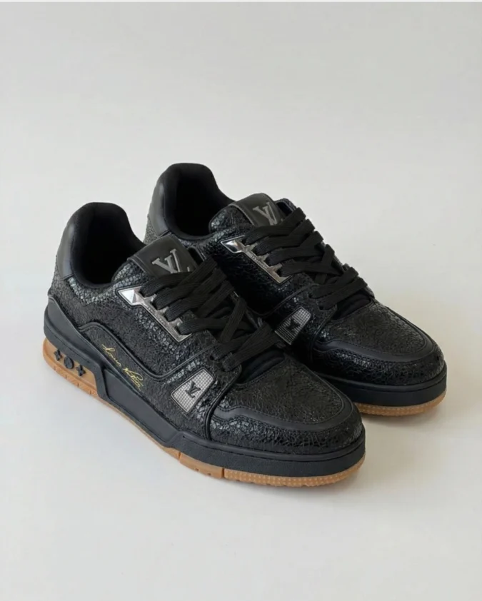 Louis Vuitton Men's LV Trainer Sneaker - Black Grained Cracked Leather with Gum Outsole