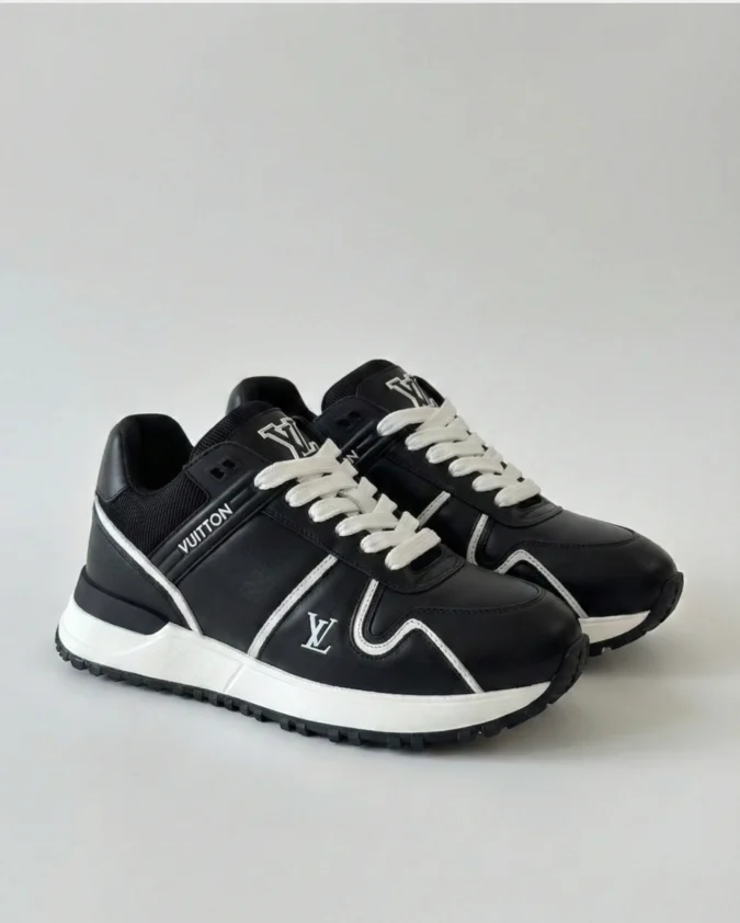 Louis Vuitton Women’s Run 55 Sneaker - Black Technical Mesh and Grained Leather