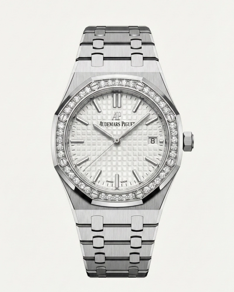 • Markers: White gold applied hour-markers and Royal Oak hands with luminescent coating.