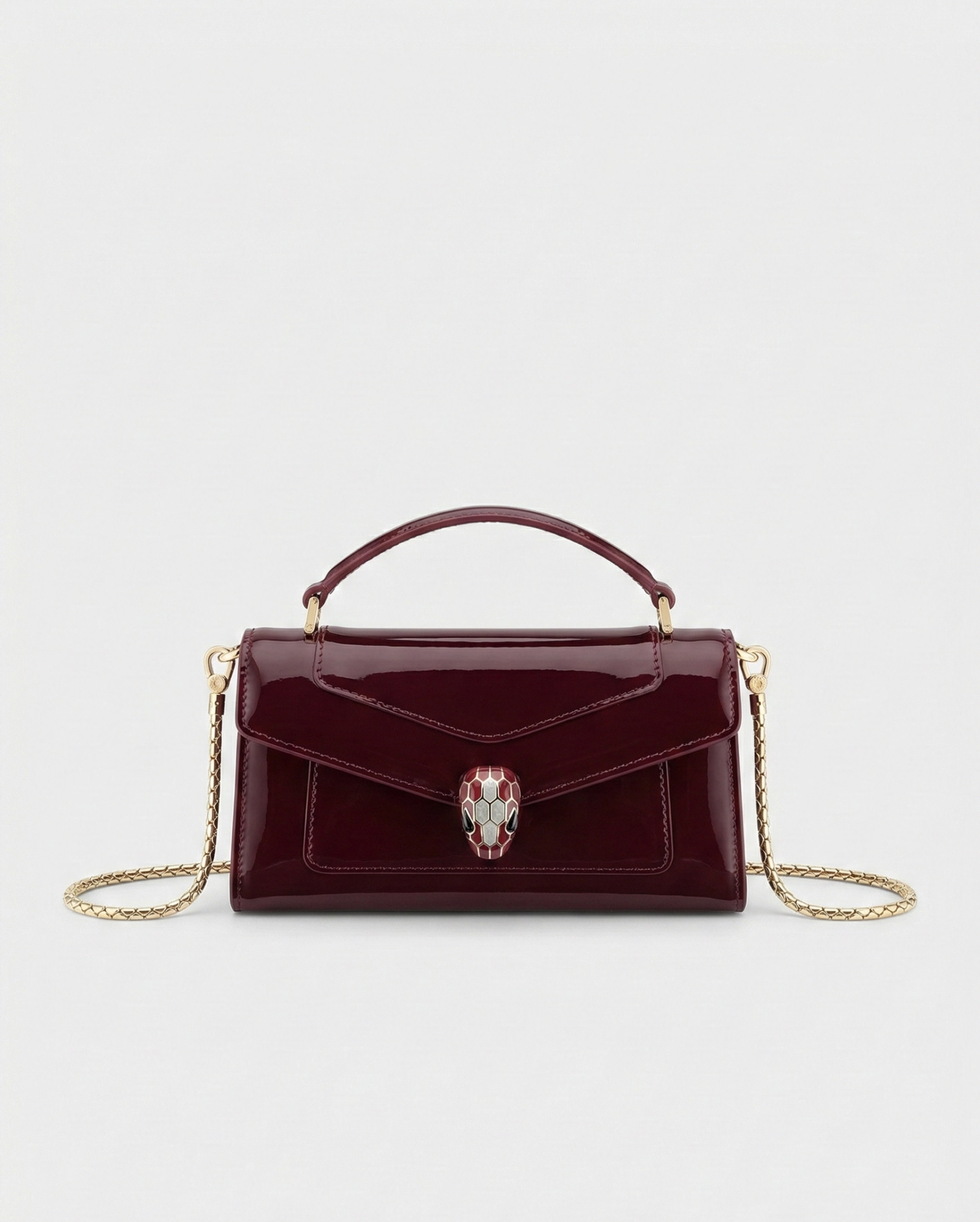 Serpenti Head: Light gold-plated brass closure featuring enamel scales.