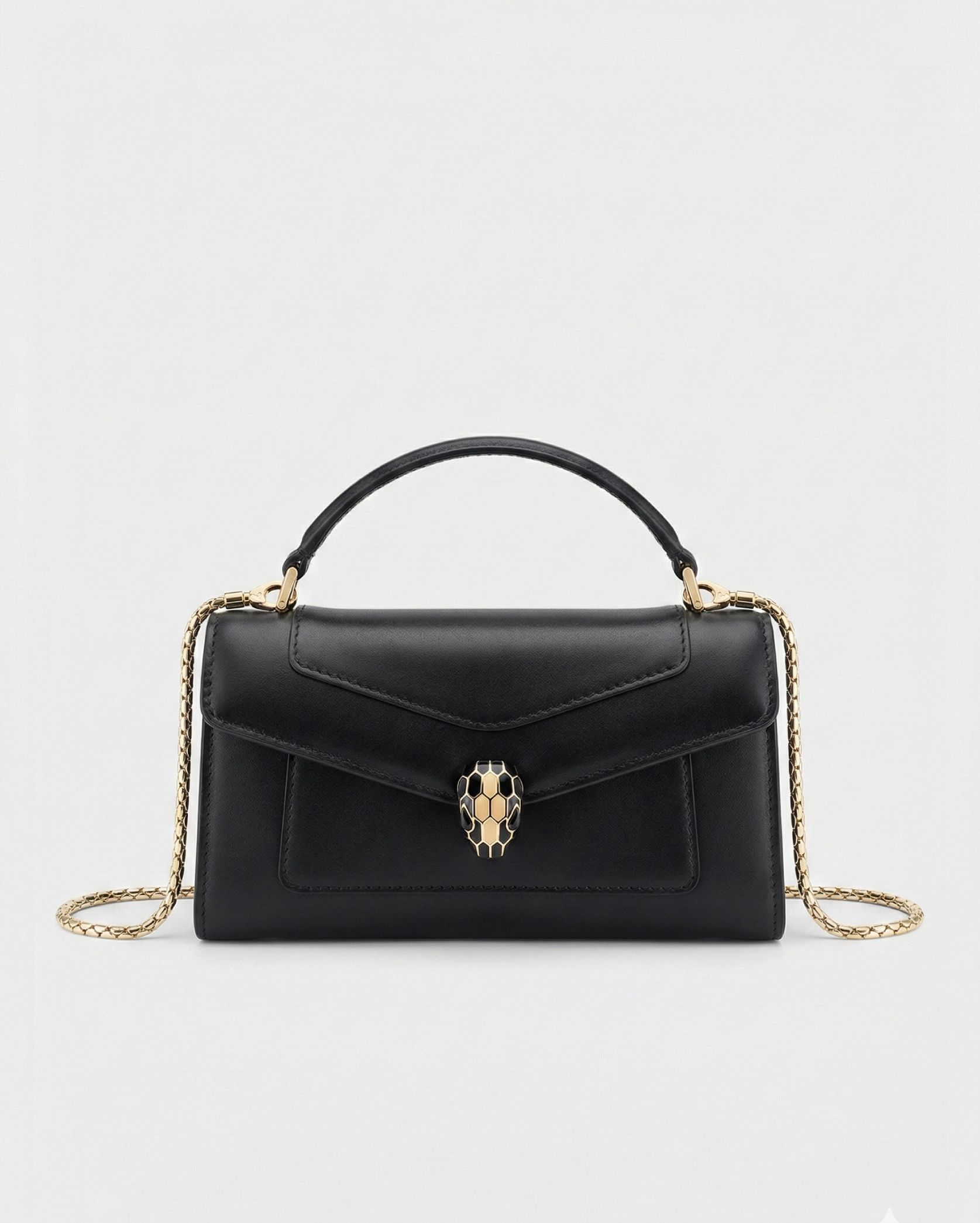 A signature piece from the Serpenti collection, this bag is crafted from premium metallic calf leather with a textured, “striated” finish that mimics the appearance of raw gemstones. It features the iconic snakehead magnetic closure, a design inspired by heritage jewelry from the 1960s.