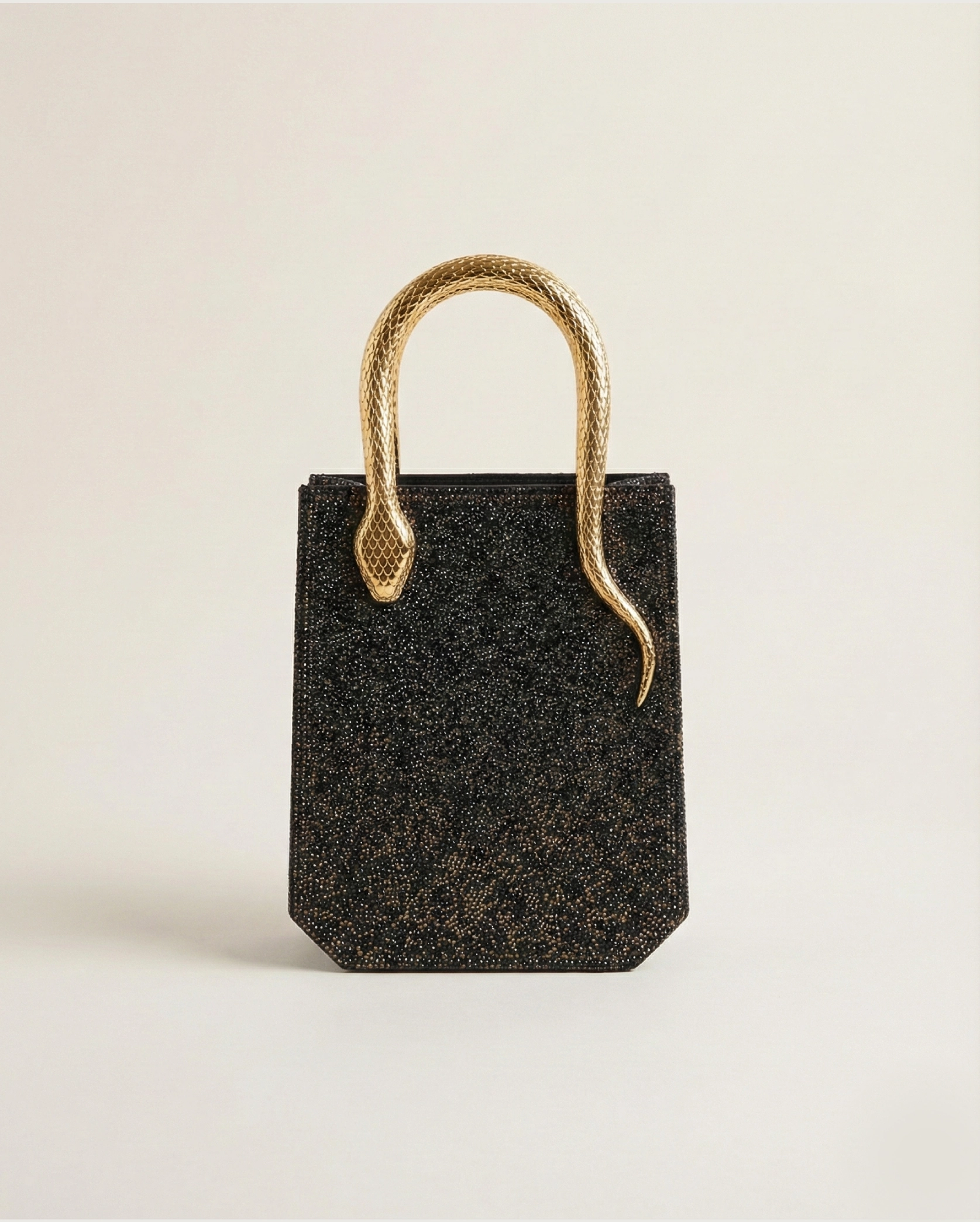 Serpenti Detail: Light gold-plated brass elements featuring detailed enamel scales.