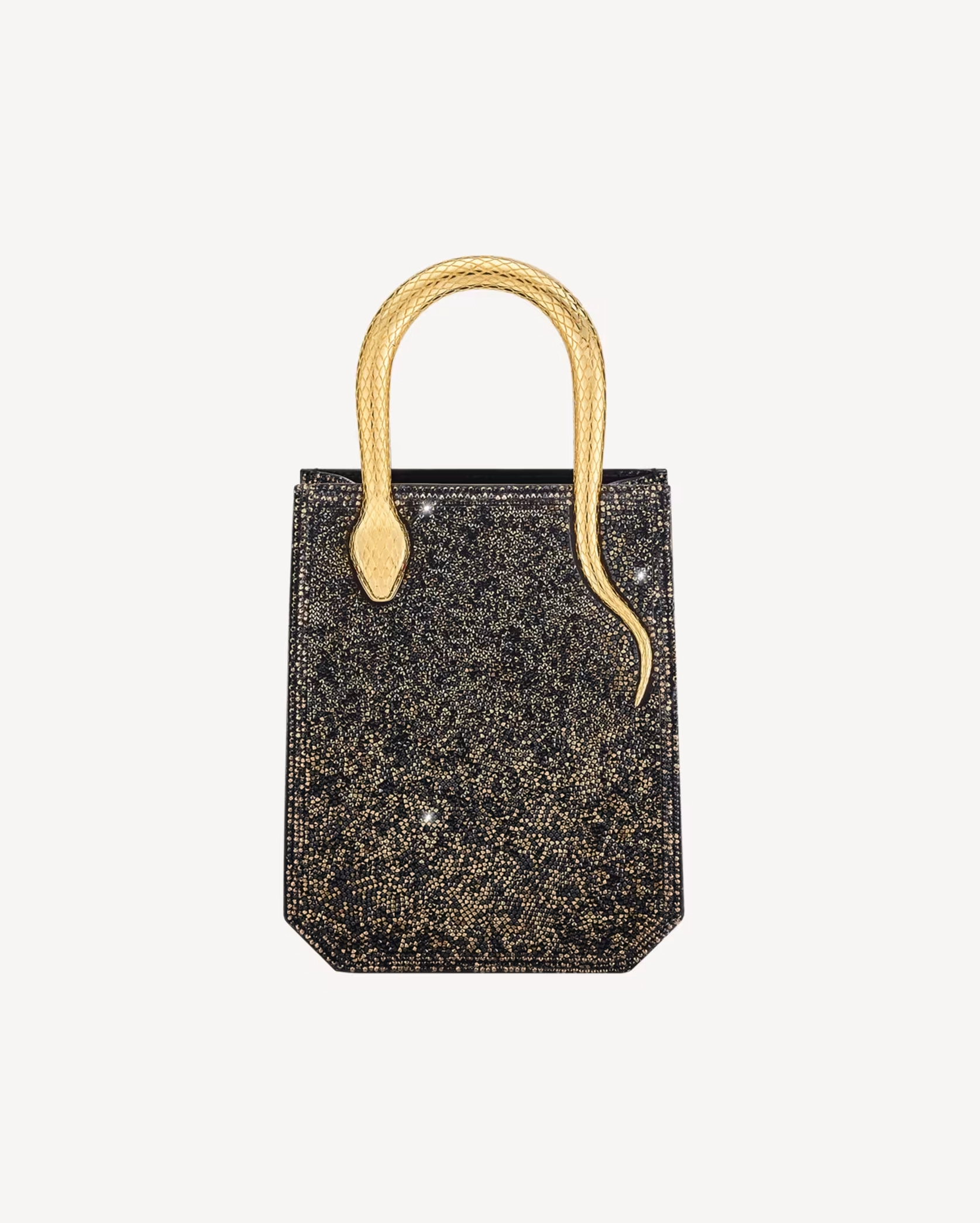 Serpenti Detail: Light gold-plated brass elements featuring detailed enamel scales.