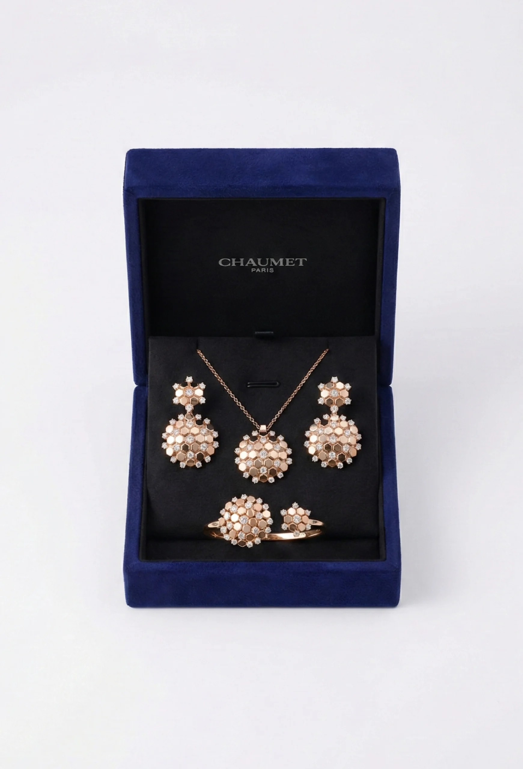 Chaumet Bee My Love Honeycomb Jewelry Set – 18K Rose Gold & Diamonds