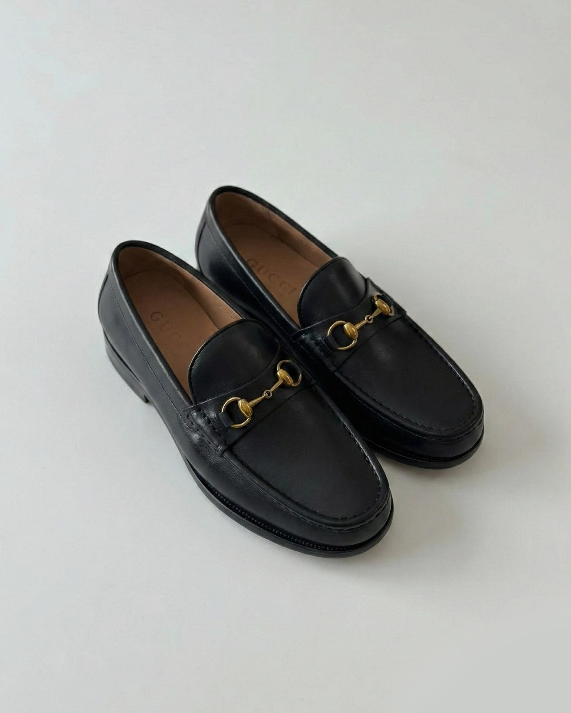 The silhouette is defined by its slim, elongated profile and the signature antique gold-toned Horsebit hardware—a hallmark of the House that pays tribute to its equestrian roots. Designed for a versatile, comfortable fit, these loafers feature a soft leather lining and a durable leather sole, making them the perfect investment for both formal tailoring and elevated casual ensembles.