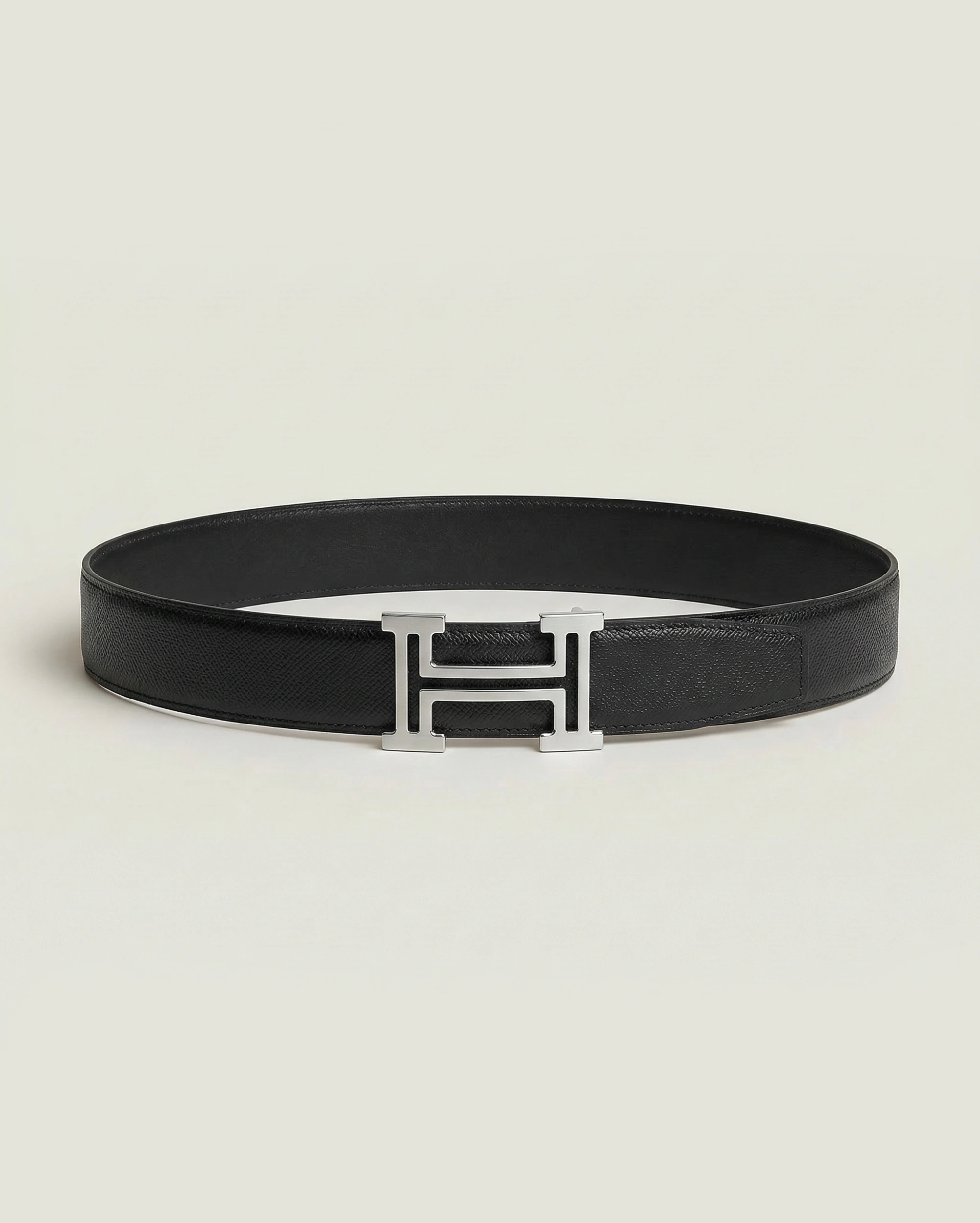 Hermès Constance Black Togo Leather Belt with Polished Silver H Buckle