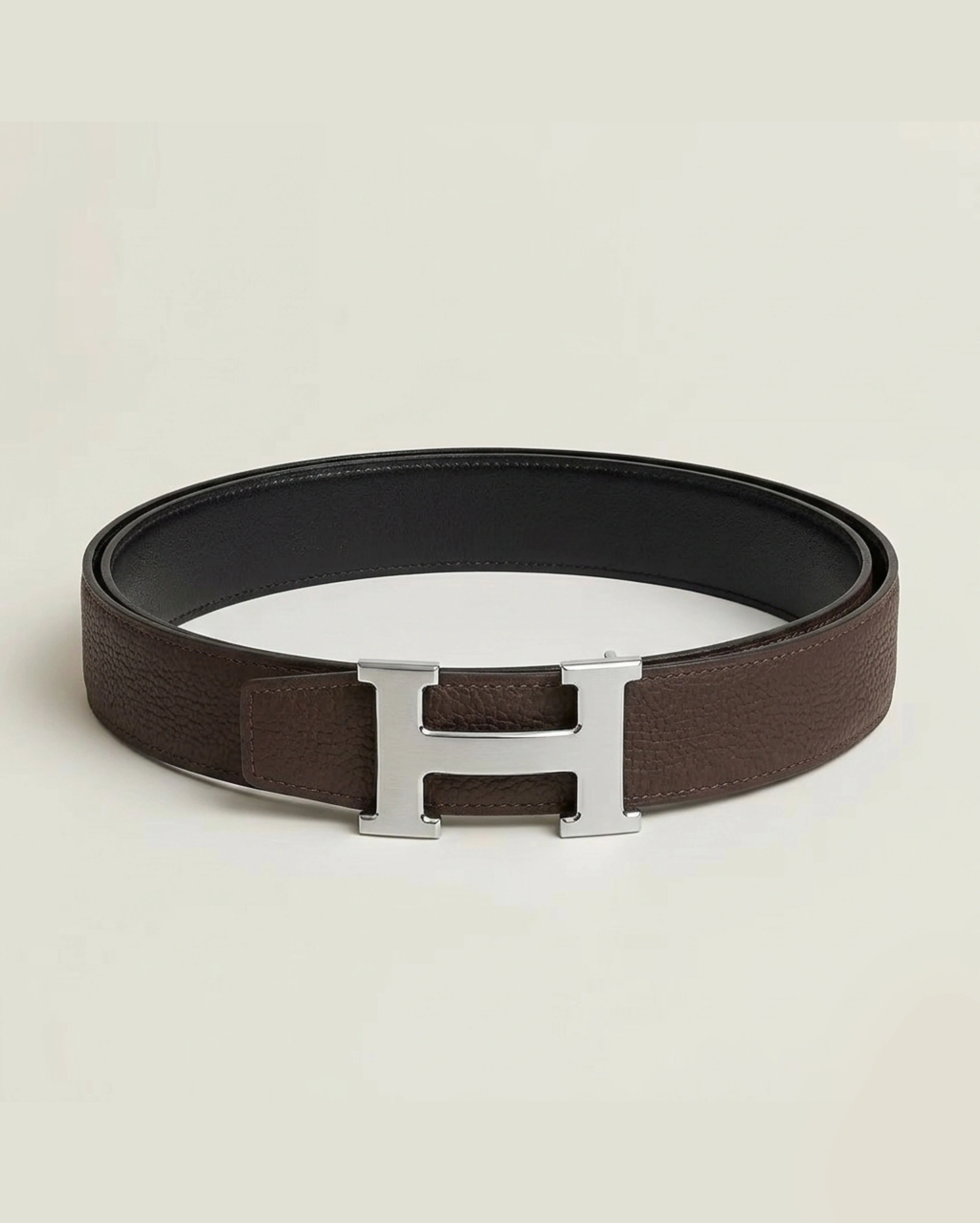 Hermes Constance Dark Brown Leather Belt with Polished Silver Buckle