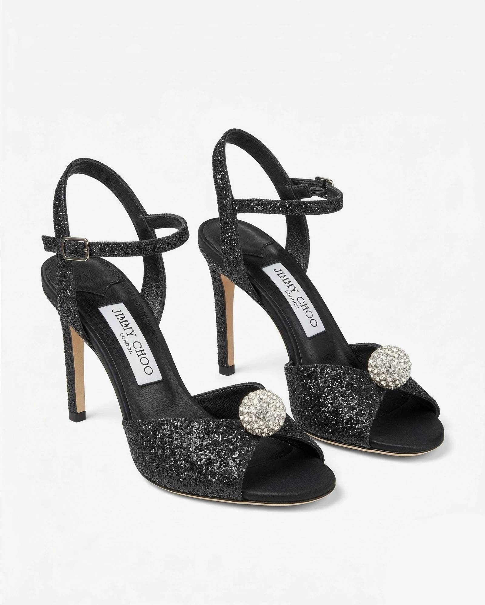 Jimmy Choo Sacora 100 Black Glitter Pearl-Embellished Sandals