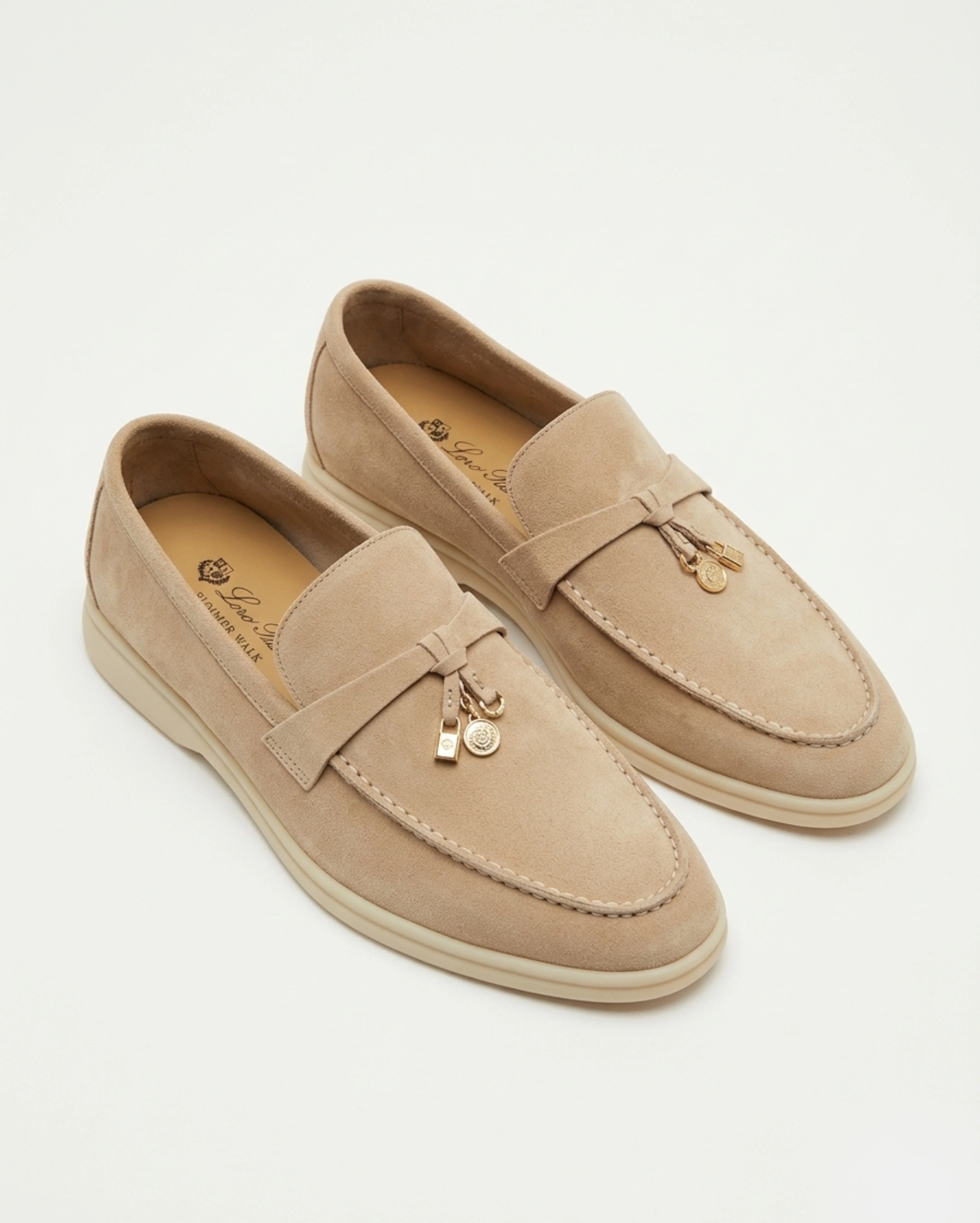 Loro Piana Sand & Ash Suede Tassel Loafers