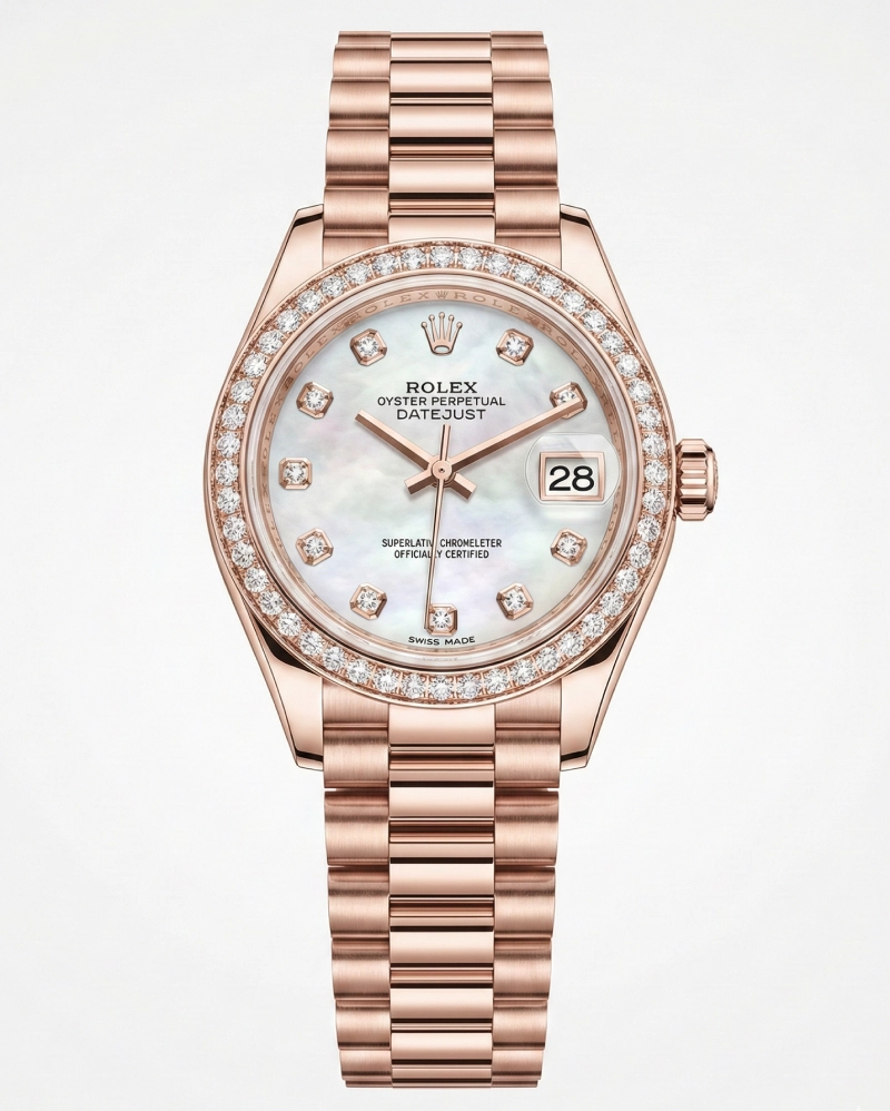 Dial: White Mother-of-Pearl set with diamonds in 18 ct gold settings.