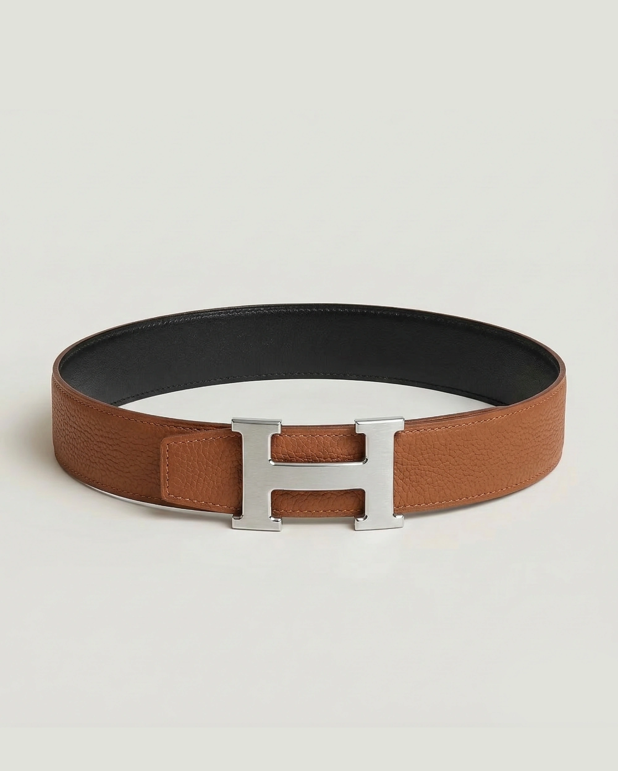 Hermes Constance Gold Tan Leather Belt with Palladium Silver Buckle
